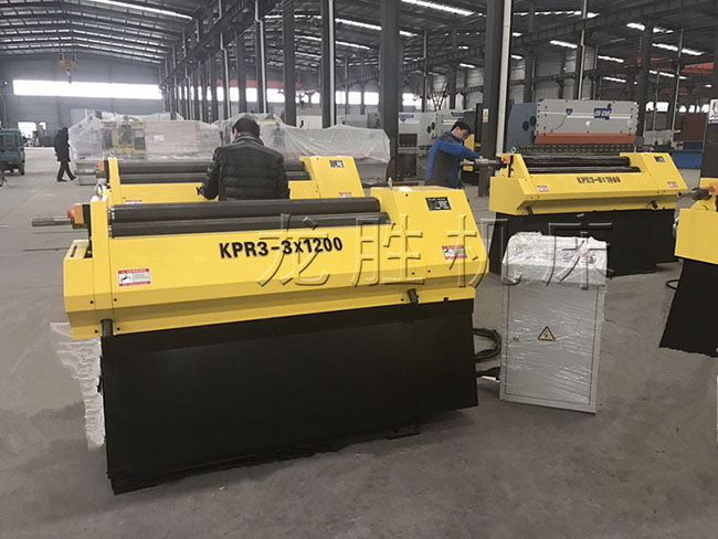 该机结构形式为三辊非对称式上辊为主传动下辊垂直升降运动,以便夹紧板材,并通过下辊齿轮与上辊齿轮啮合,同时作为主传动;边辊作倾升降运动,具有预弯和卷圆双重功能。结构紧凑,操作维修方便。